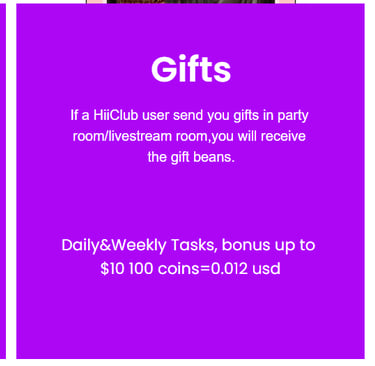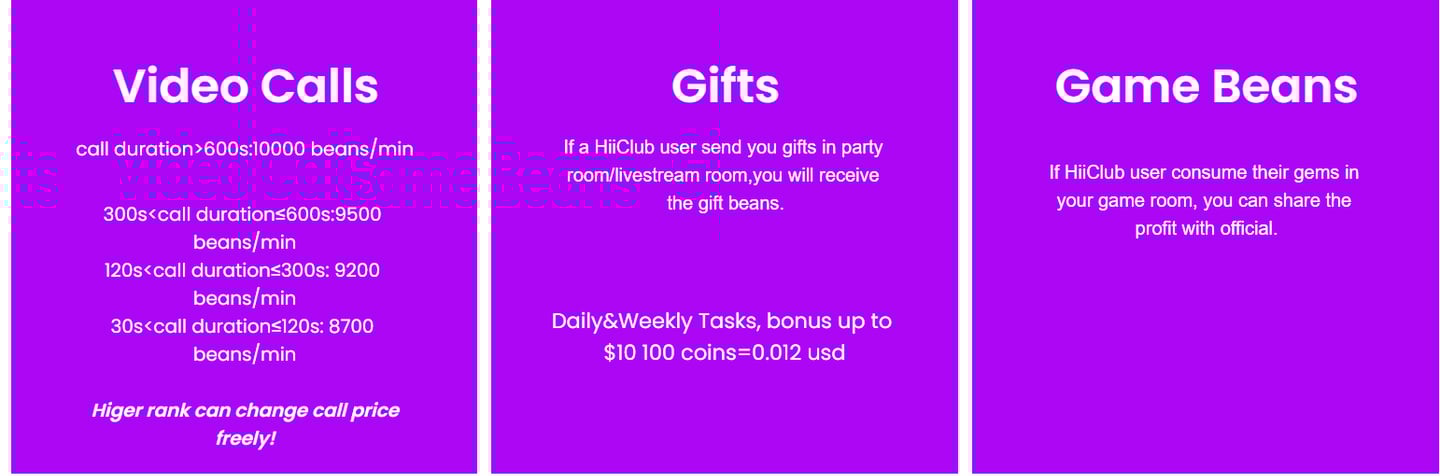 HiiClub BEANS WILL BE EARNED ON CALLS, GAMES OR THROUGH GIFTS FROM OTHER USERS.